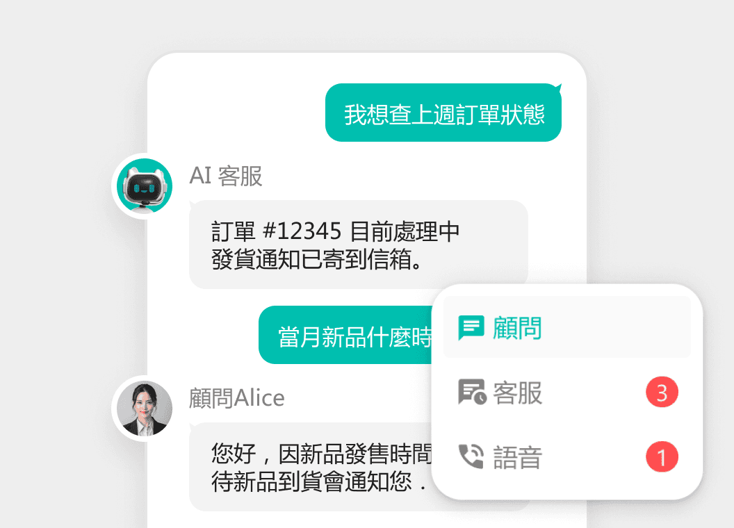 不論是 AI 回答或真人接手, 都基於相同的知識、語氣與判斷邏輯。讓服務品質一致、可交接、可延續。