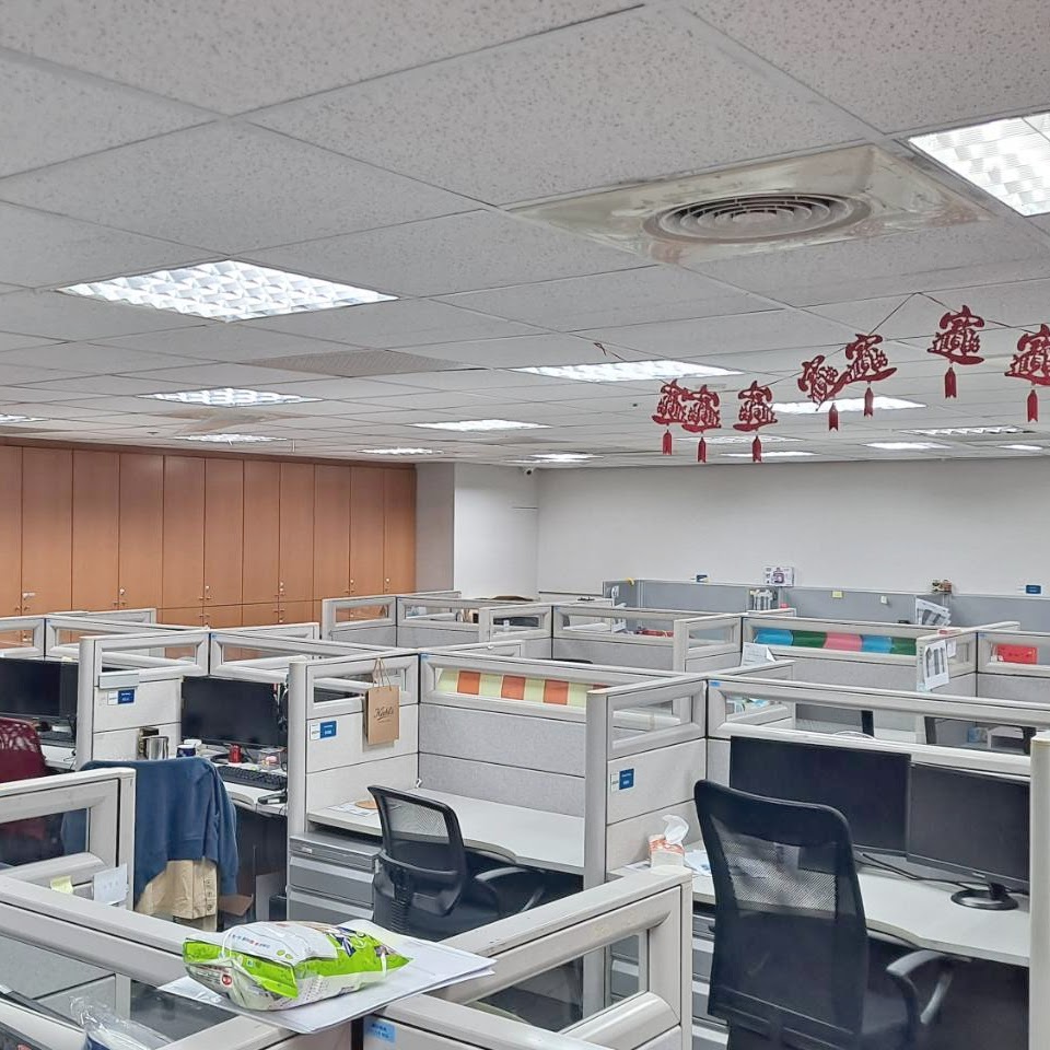 辦公環境乾淨明亮,專職清潔人員每日清掃、每季定期環境消毒;中央空調、飲水機(廠商定期收回清洗)、擦手紙、自動販賣機、用餐休憩區、哺乳室、優質咖啡機等設施一應俱全,提供同仁最舒適的工作環境。