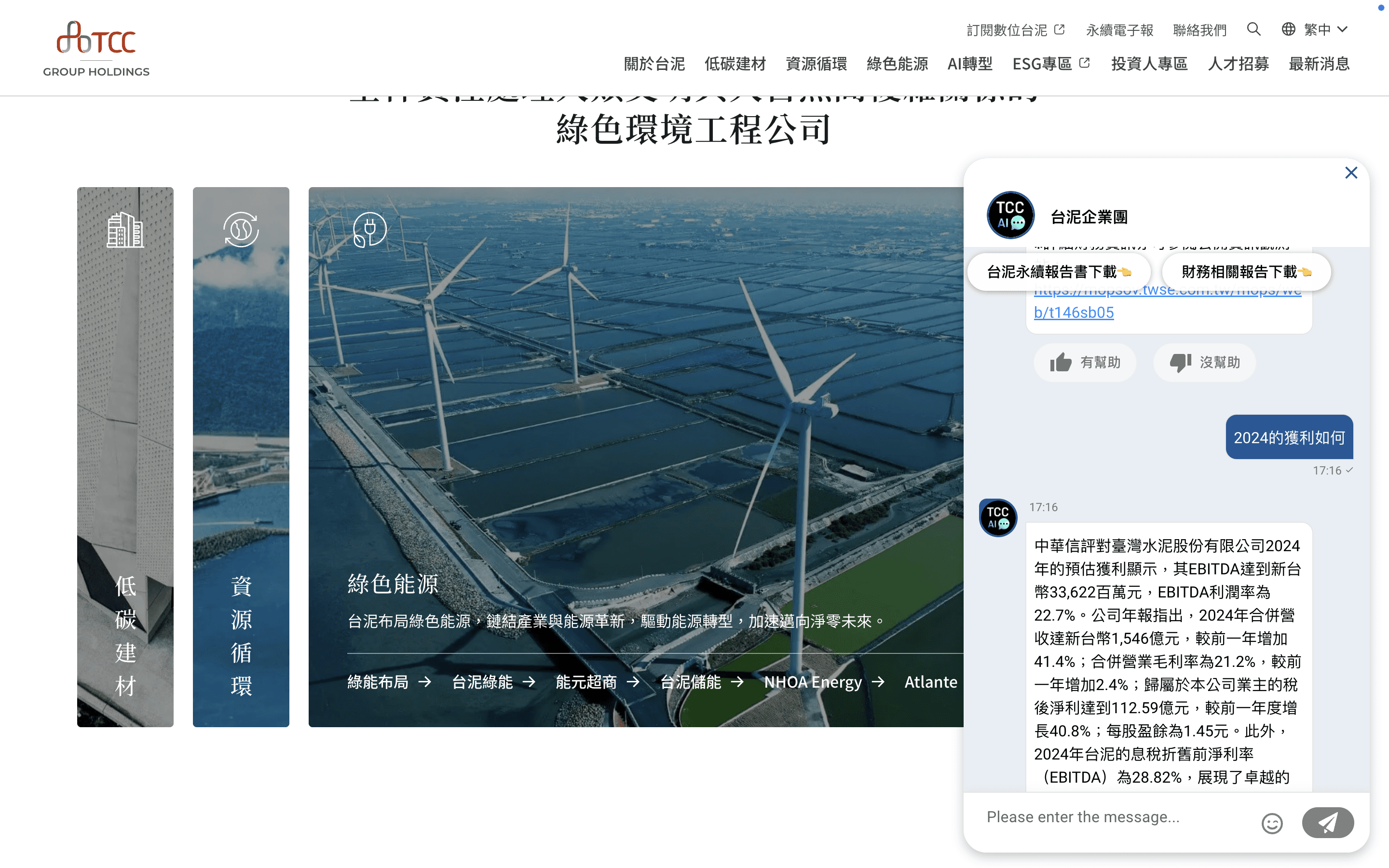 這不是能代表台泥發言或解答的 AI,而是一個讓官方資訊在不同語言與使用情境中,更容易被找到、被查證、被正確理解的工具。