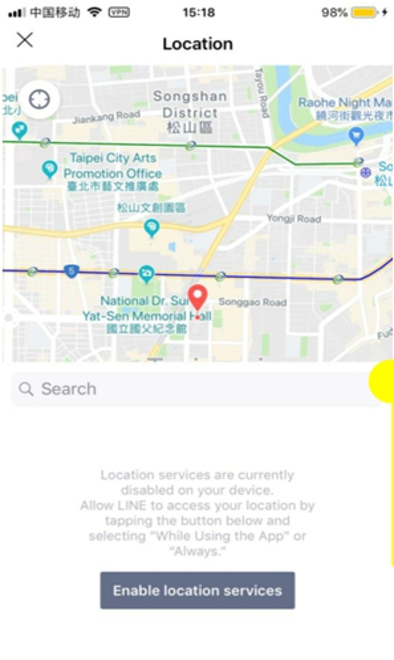 當用戶選擇外帶餐點時,訂餐機器人會推送「分享位置訊息」的按鈕,讓用戶一鍵點擊、迅速定位,減少手動輸入地址的繁瑣流程。